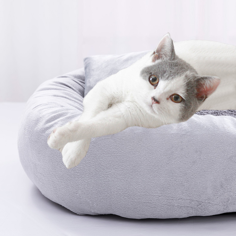 DESIGN FEATURES: The round cat bed has nested walls and is filled with high fluffy PP cotton to promote pet security, while the round pet bed provides a safe and comfortable sleeping space for cats .