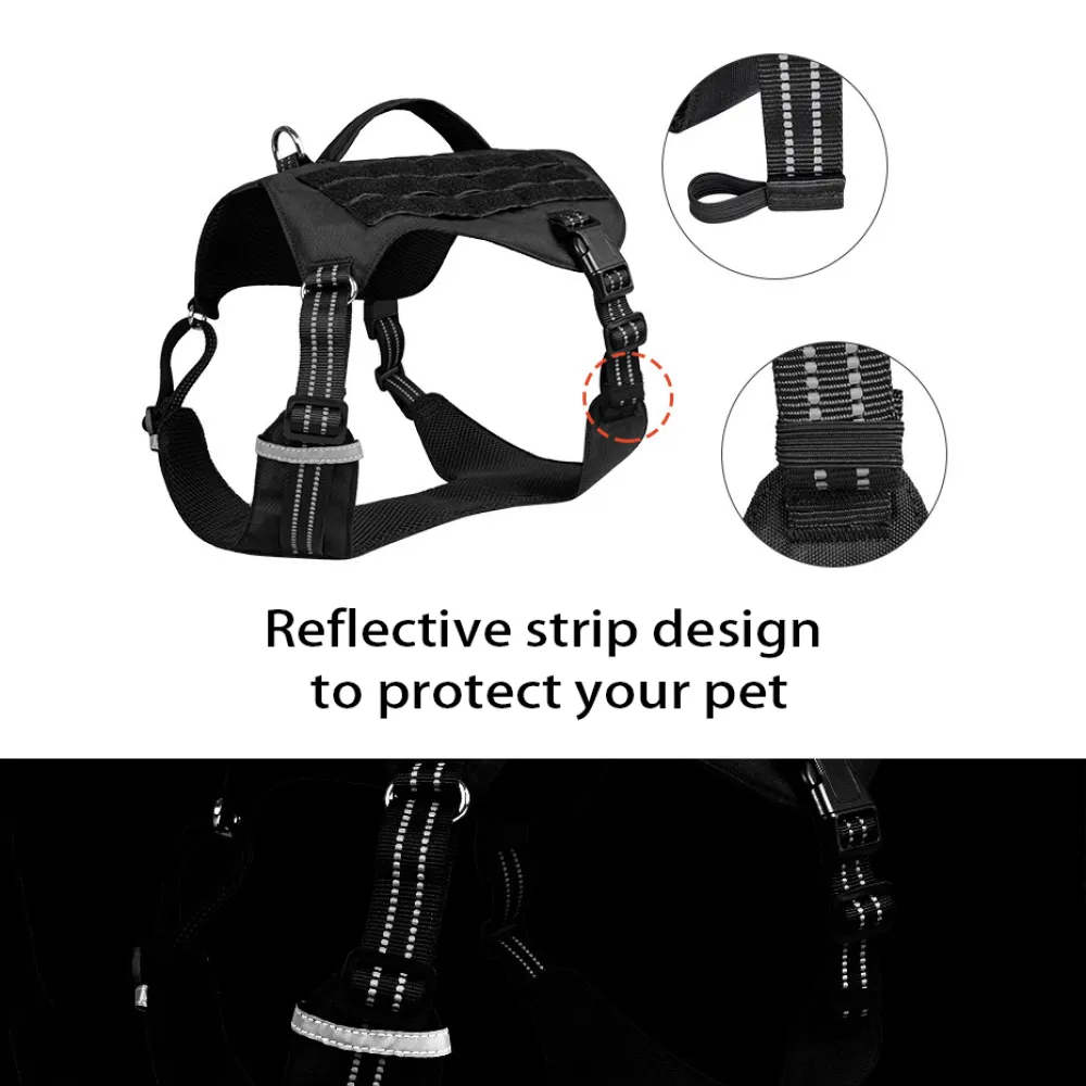TACTICAL STYLE DOG VEST: Our tactical dog harness is made with enhanced oxford fabric with high density for extra durability and dirt/water/abrasion resistance, Prevent chewing or tearing. Breathable meshof this dog harness providing extra comfort and cool.